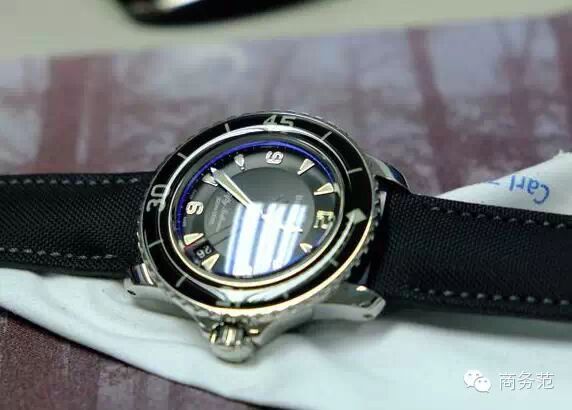 这高仿表刚出来的时候吓了我一跳,因为这枚腕表最大的特色就是蓝宝石材料的表圈,很难仿制。没想到国内的高仿表厂商成功解决了蓝宝石的磨制问题,生产了这枚。表镜也采用的是球面蓝宝石表镜,内层镀膜,在光线下可以泛出漂亮的蓝色圈。