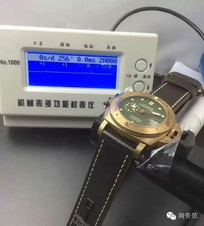 超高仿的表,厂家出厂的时候甚至和真表一样具有调教,测试。图为沛纳海的高仿,每日误差0秒.  本文发送的图片资料均为高仿表。大多是高仿表的迷惑性非常强,奉劝一句,买表小心。淘宝假表众多,没有懂的人指点,不要乱入。特别是在淘宝购买或者微信代购,如果你不会分辨,很容易用真表的钱买到假表。不要听信淘宝店主和微信老板所说的可以专柜验货,国内手表专柜销售人员参差不齐,有的根本没有经过专业培训,是无法分辨真假的。再加上,品牌专柜为了避嫌,也不会为表开具真假证明。