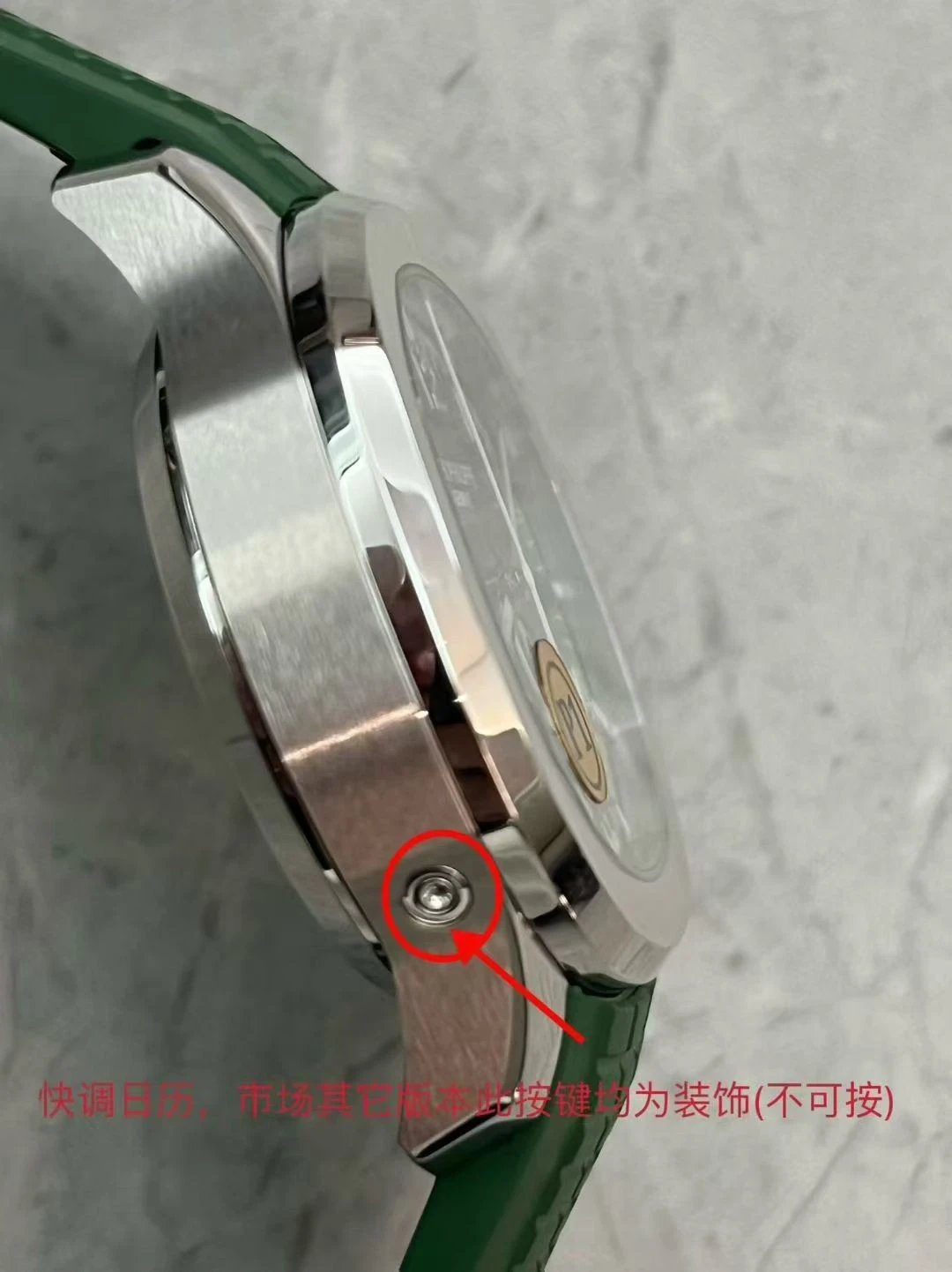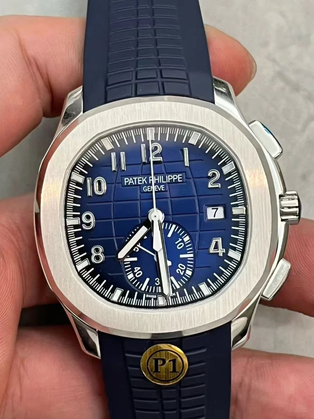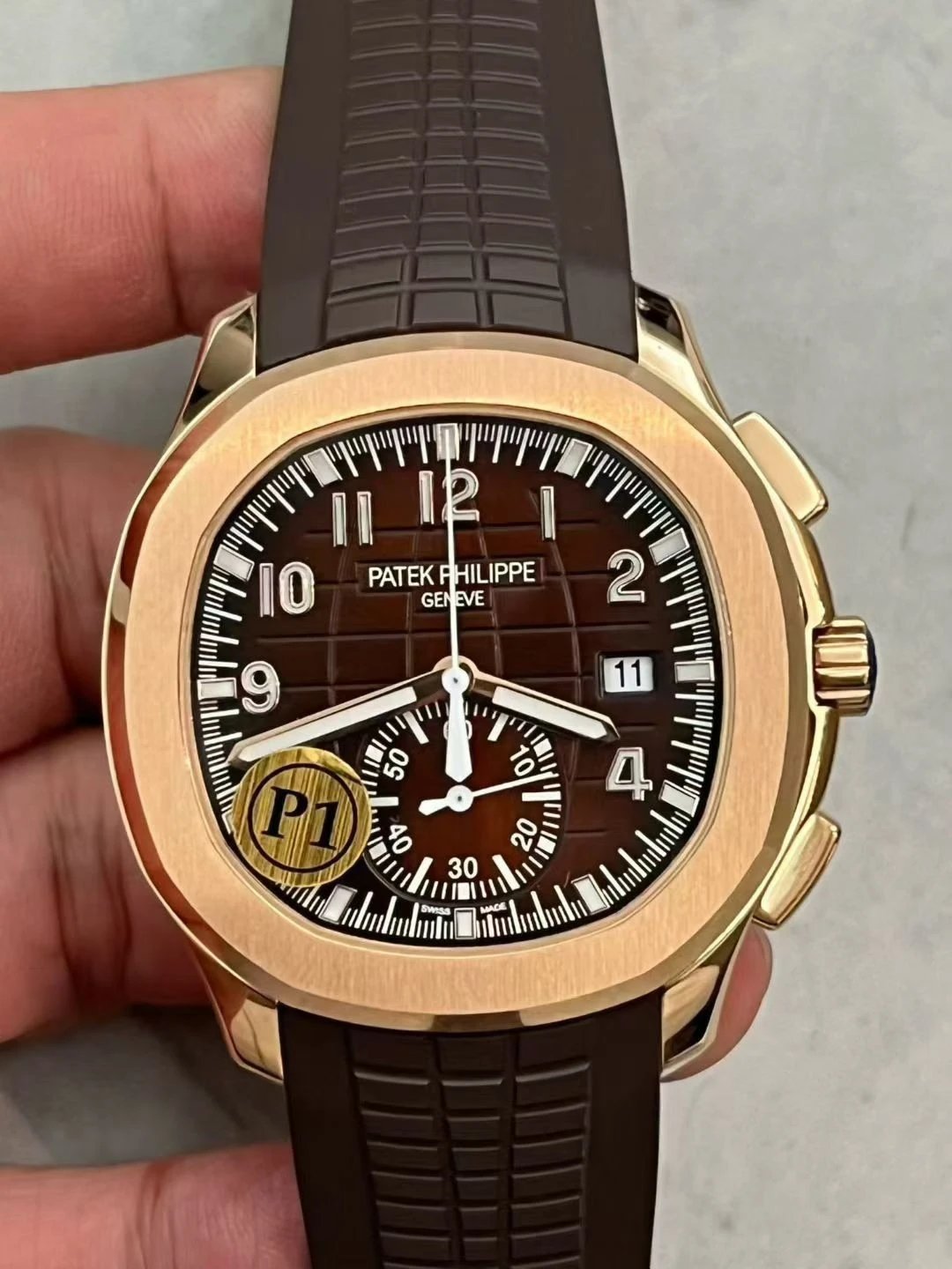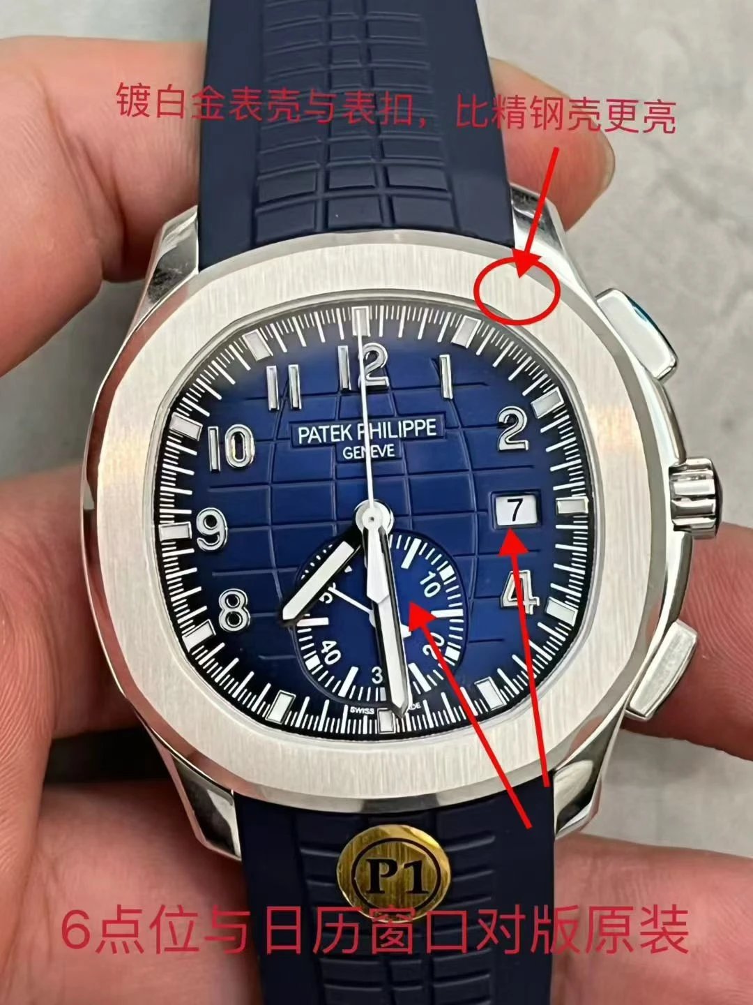 • 5968G-001 藍盤 —— 白金版本,表殼與表扣呈現更亮白的金屬質感,比精鋼更顯高級。• 5968G-010 綠盤 —— 同樣為白金款,外觀亮白醒目。• 5968R-001 棕盤 —— 玫瑰金表殼搭配棕色面盤,呈現奢華屬性。• 5968A-001 黑盤橙針款 —— 精鋼材質,也是市場最熱門的橙針經典版本。為回饋新老客戶,P1廠此款額外贈送開模橙色膠帶一條。